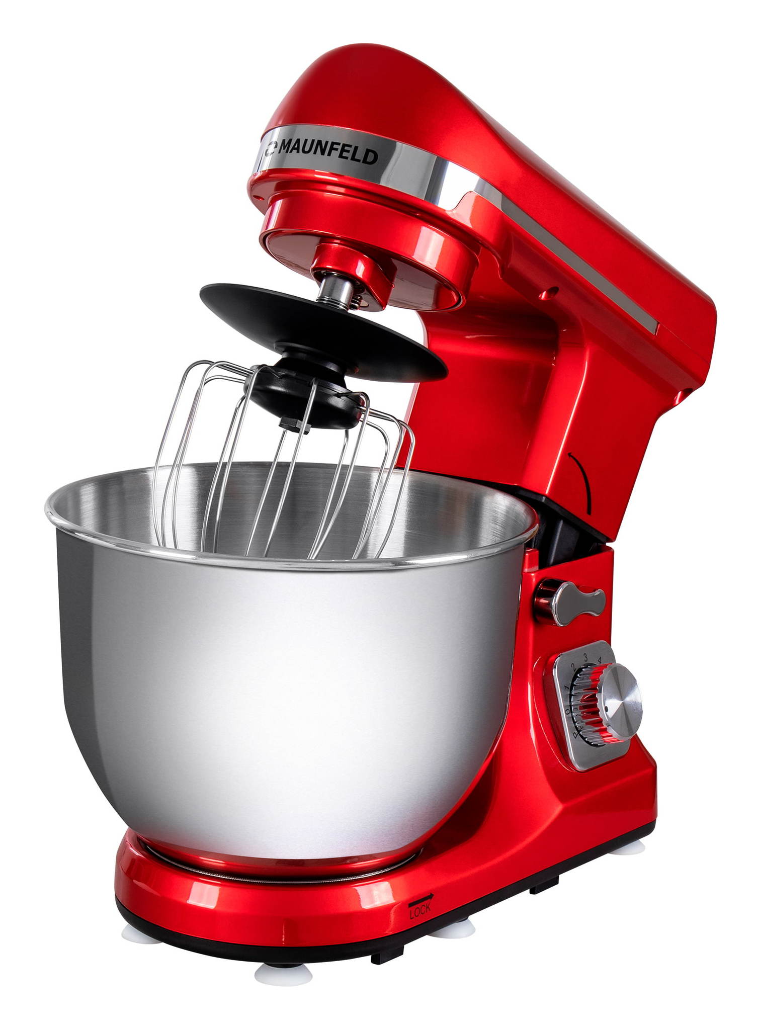 Элегантный планетарный мощный миксер с пятилитровой металлической чашей и тремя насадками.