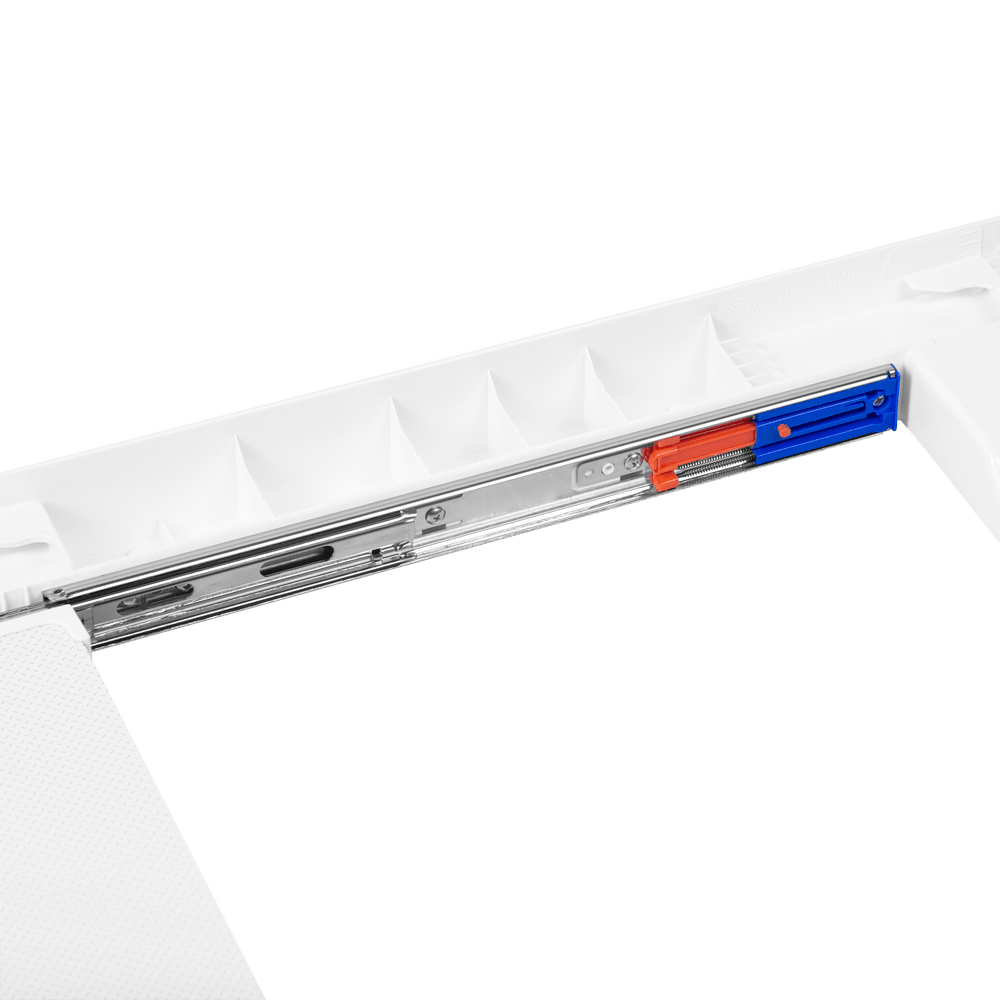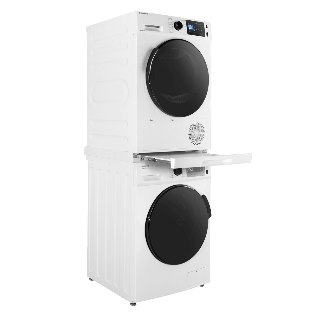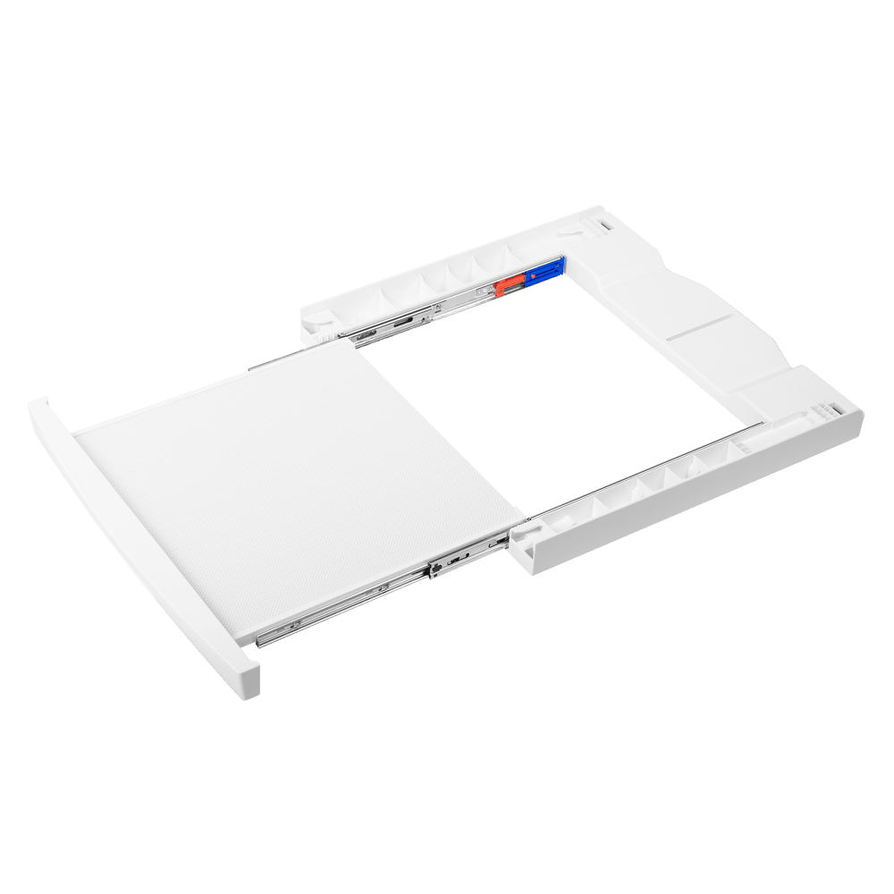 Благодаря выдвижной полке с автоматическими доводчиками больше не придется постоянно наклоняться к корзине с бельем или держать ее на весу при разгрузке сушильной машины, достаточно просто поставить корзину на полку.