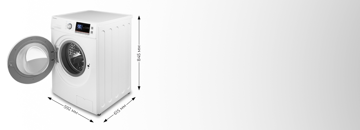 Большая дверца диаметром 480 мм не только удобна для загрузки белья, но и очень стильно смотрится.