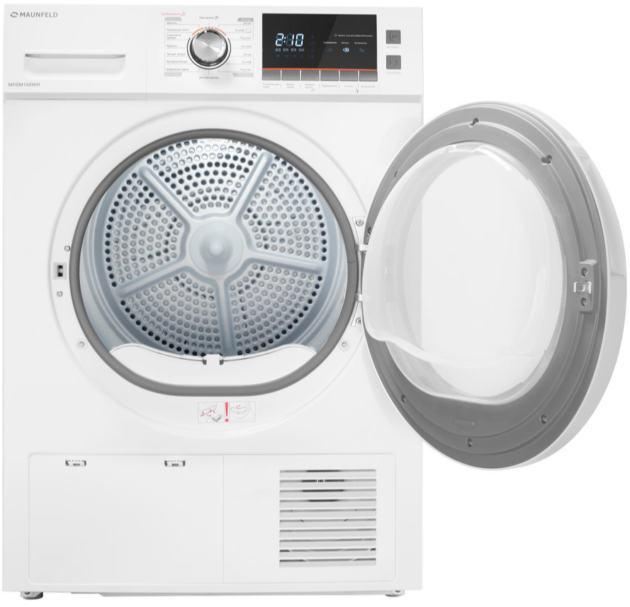 Угол открытия дверцы 180 градусов при диаметре люка 375 мм делает процесс загрузки и извлечения одежды из сушильной машины простым и удобным!