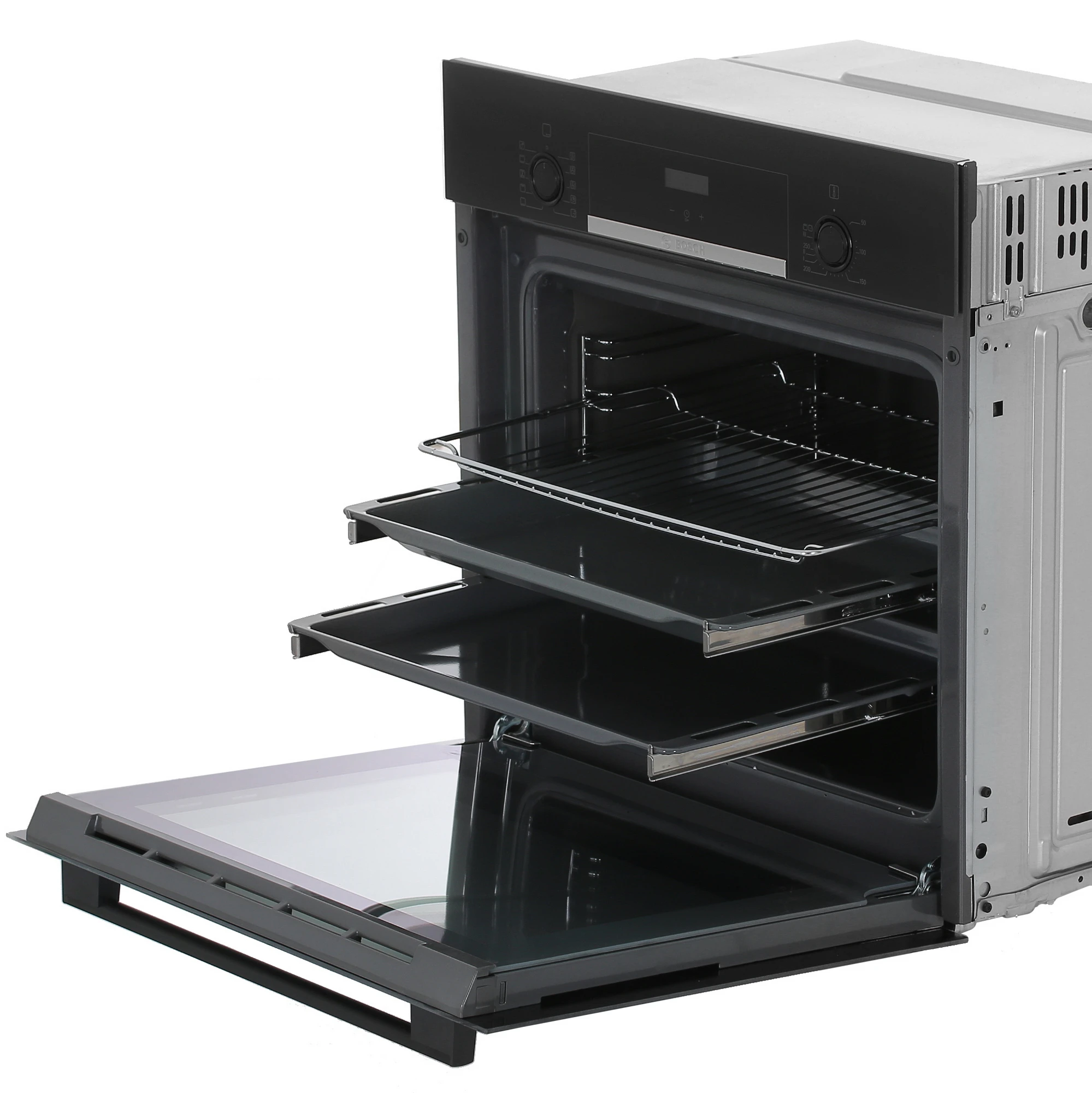 В конструкции духового шкафа используется специальный амортизатор, который плавно закрывает дверь духовки без лишнего шума. Никаких усилий, просто чуть подтолкнуть дверь и она сама приостановится перед закрытием, а затем закроется мягко и тихо.