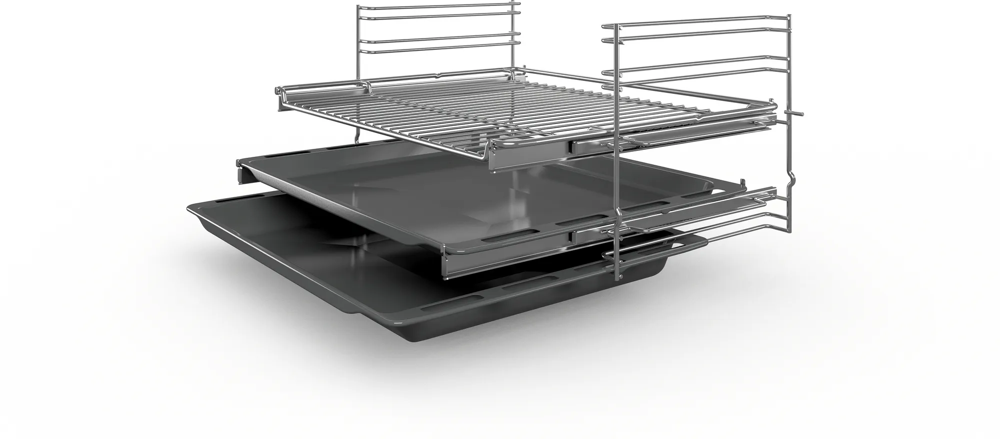 Наша система телескопов безопасна и проста в использовании. Гораздо проще размещать еду на тех уровнях, которые оснащены телескопическими направляющими. Вам больше не нужно тянуться в горячую духовку, чтобы проверить статус приготовления.