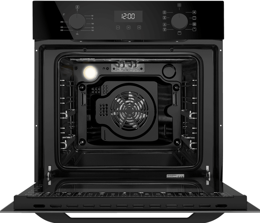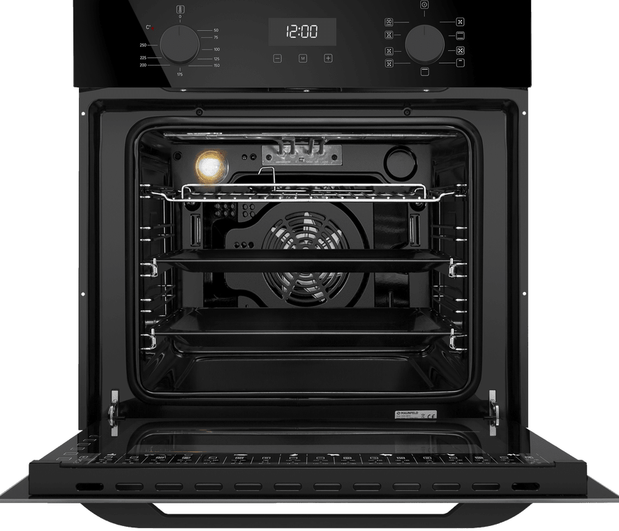 Тангенциальное охлаждение, реализованное в данной модели, минимизирует передачу тепла от духовки предметам, находящимся рядом, например мебели. Дверца состоит из 3-х стекол, что создает холодный фронт и делает процесс приготовления безопасным, так как внешнее стекло практически не нагревается.