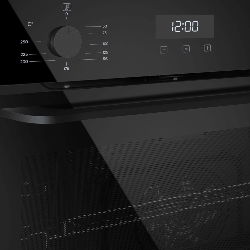Фронтальная панель дверцы сделана из высококачественного жаропрочного стекла черного цвета, окрашенного по всему объему, что является отличительной чертой бытового прибора премиум-класса.