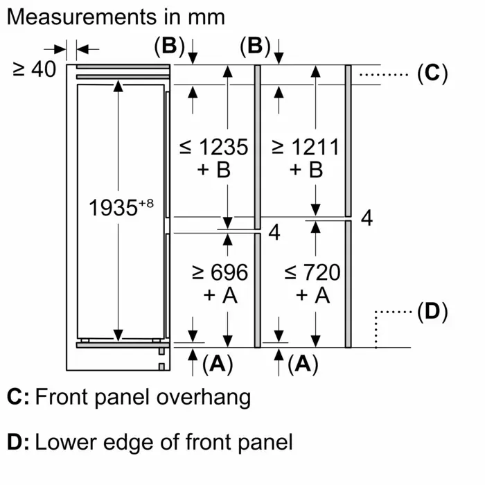Размер ниши для встраивания (В х Ш х Г), см