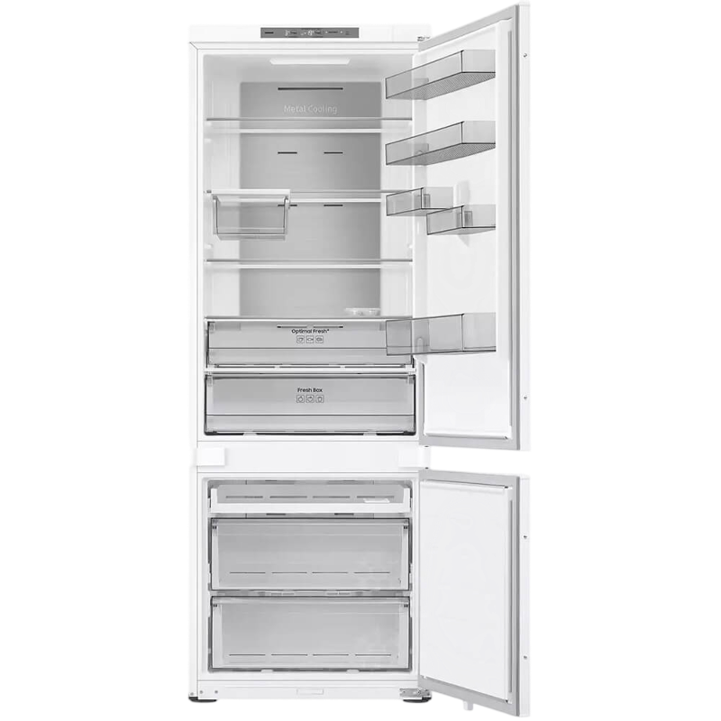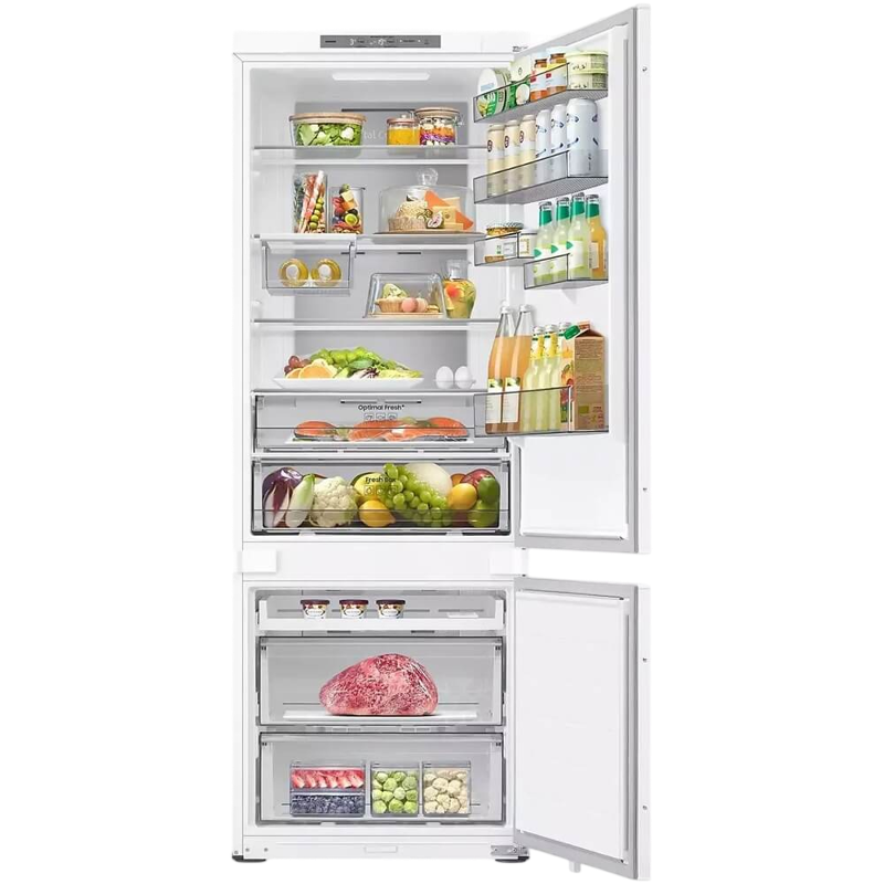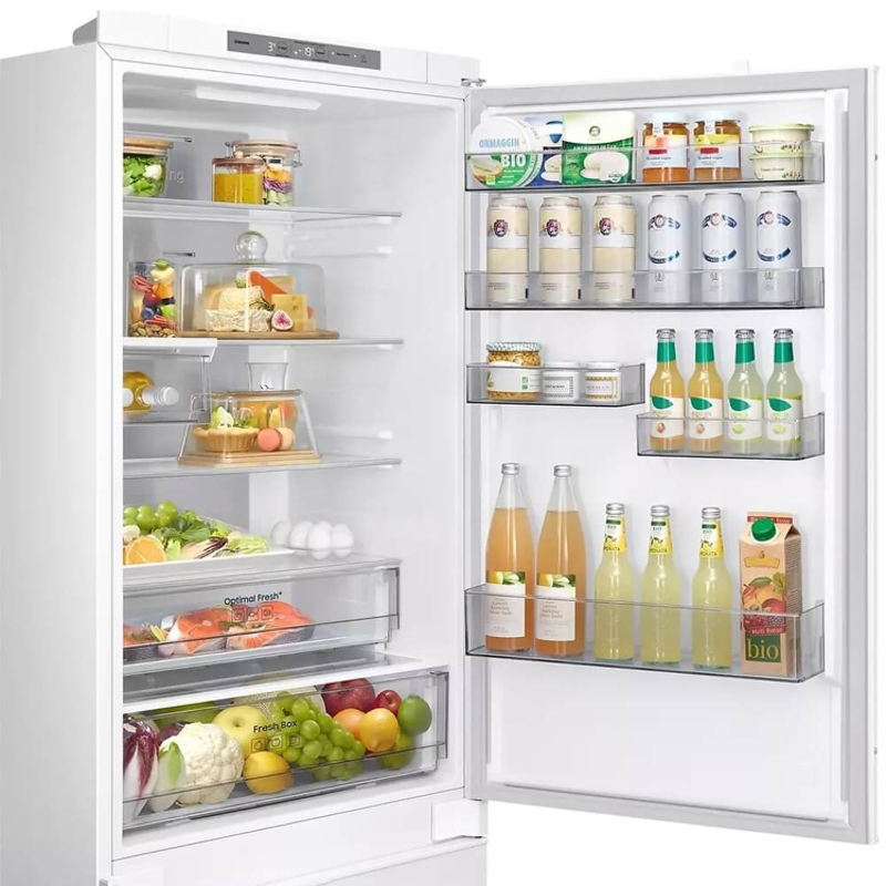 Встраиваемый холодильник Samsung BRB38G705EWW — это современное и функциональное решение для кухни, сочетающее компактность, высокую производительность и инновационные технологии. Модель имеет габариты 193.5x69x55 см и общий объём 389 литров (289 л — холодильная камера, 100 л — морозильная), что делает её идеальной для семей среднего размера. Технология Twin Cooling обеспечивает независимое охлаждение холодильной и морозильной камер, что позволяет поддерживать оптимальную влажность и температуру для каждого типа продуктов, сохраняя их свежесть дольше. Система No Frost избавляет от необходимости размораживать холодильник вручную, а режим "Отпуск" позволяет экономить энергию во время длительного отсутствия.