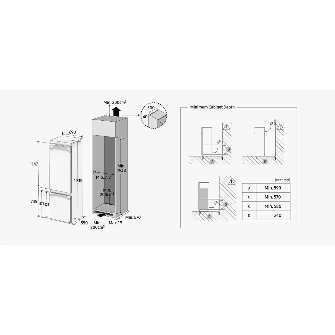 Габариты 193.5x69x55 см делают холодильник идеальным для встраивания в кухонные гарнитуры, экономя пространство и сохраняя стильный вид интерьера.