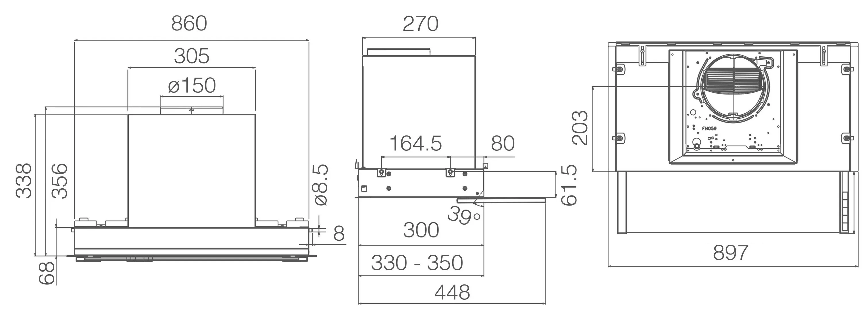 Диаметр воздуховода, мм 150