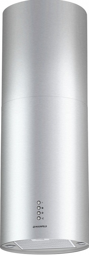 Корпус цилиндрической формы монтируется на потолок над варочной поверхностью. В нижнем торце вытяжки расположен специальный многослойный жироулавливающий фильтр, который легко вынимается и полностью разбирается для чистки.